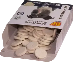 BF® Sensitive (hypoallergenic) natural yeast tablets for dogs, with amino acids, vitamins (A, B, D and E) and minerals, contain tasty and healthy ingredients. Reduces the occurrence of allergic reactions. In addition to vitamin B (complex) and vitamin D, the (beer) yeast also contains high-quality and healthy amino acids, minerals, proteins and enzymes. Supports the skin, coat, defence and immune systems. For all dog breeds.