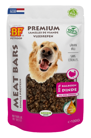 Les barres de viande BF®Petfood Meat Bars Turkey sont des délices à base de viande de première qualité pour tous les chiens, du chiot au senior. Ces barres de viande hypoallergéniques, savoureuses et saines, sont une combinaison parfaitement équilibrée d’ingrédients sains à base de viande pure et d’huile de saumon écossais. 100% naturelles, sans céréales ni gluten et sans additifs artificiels. Favorise la propreté des dents. Le processus de séchage de ces snacks est réalisé de manière durable. Tout cela en réduisant au maximum la production de déchets et les émissions de CO2. Ils sont faciles à casser, ce qui permet d’en donner la juste quantité. Les chiens adultes et les chiots peuvent apprécier ce délicieux en-cas sain.