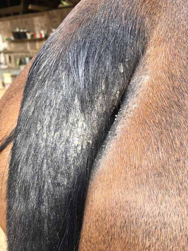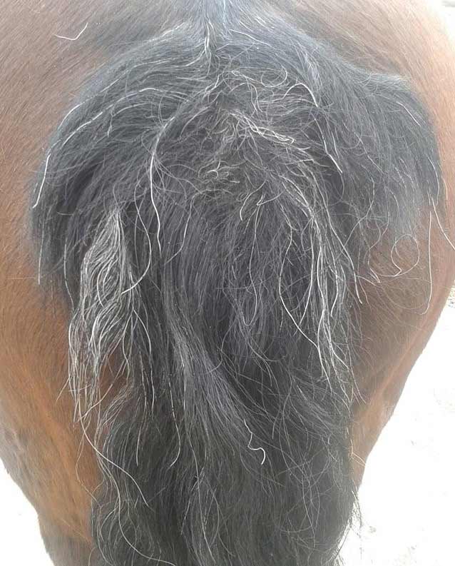 Bien masser l’huile sur les crins, la base de la queue et les autres zones sensibles à la peau sèche et irritée.