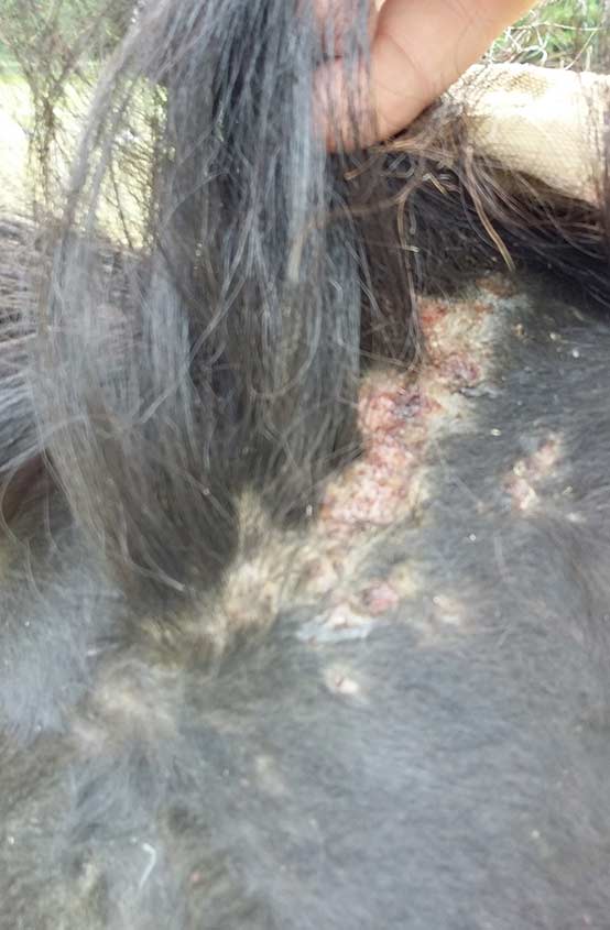 « Mon cheval adore qu’on lui applique ce produit à la base de sa crinière. Cela doit être très apaisant pour ses zones rouges qui le démangent. »