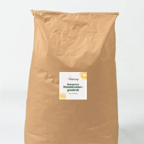 Natuly Weidekruiden Grasbrok is afkomstig van jarenlange biologische kruidenrijke, laaggroeiende weiden. Deze weiden hebben zich zelf aangepast aan de natuur en bevatten geen prestatiegrassen, wel grassen en kruiden die passen in een gezond rantsoen. De grasbrok heeft een laag grasgehalte, en de weidekruiden zijn zorgvuldig geselecteerd voor hun botanische zuiverheid, bijna 100%.