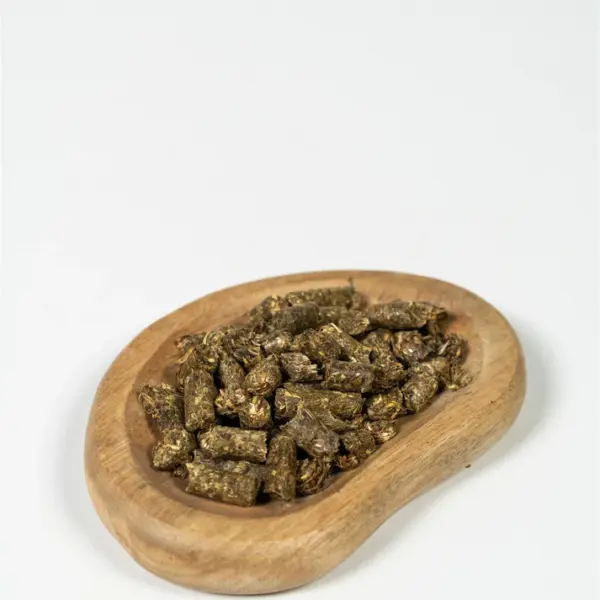 Smakelijke grasbrok verrijkt met diverse weidekruiden, ideaal voor een vezelrijk rantsoen dat aansluit bij natuurlijk graasgedrag.