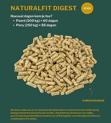 NaturalFit Digest is a fiber-rich supplement to the diet, enriched with condensed tannins. Ideal for supporting healthy digestion and intestinal balance, especially in sensitive horses.