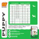 BF® Puppy mini is a high-quality, complete, premium and natural dog food for puppies and young dogs of small breeds. 54% turkey, fish, chicken and rice. With prebiotics FOS (inulin) and salmon oil. Wheat and gluten-free. Yeast, fibre and prebiotics support digestion. High acceptance and digestibility. Optimal kibble size, shape and structure. Supports growth, development, skin and coat, immune system, joints and teeth. Inulin FOS (prebiotics) stimulates the intestinal flora and thus supports health. Meets increased energy requirements. Also suitable for pregnant and/or lactating small breed dogs*. Healthy food that ensures optimal digestion, stool and good condition for your dog.
