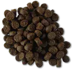 Crude protein 33%, crude fat 20%, crude ash 6.5%, crude fibre 2.0%, calcium 1.1%, phosphorus 0.8%, magnesium 0.09%. Additives per kg. Nutritional additives: vitamin A 18,000 IU, vitamin D3 1,800 IU, vitamin E 400 IU, vitamin C 200 mg, iron 75 mg, iodine 1.5 mg, copper 5 mg, manganese 30 mg, zinc 65 mg, taurine 1,000 mg. Technological additives: lecithin 5,000 mg. Contains approx. 0.2% DHA, 0.2% EPA. Contains natural antioxidants and preservatives. Available in 1.5 kg and 5 kg packs. 4,300 kcal per kg.