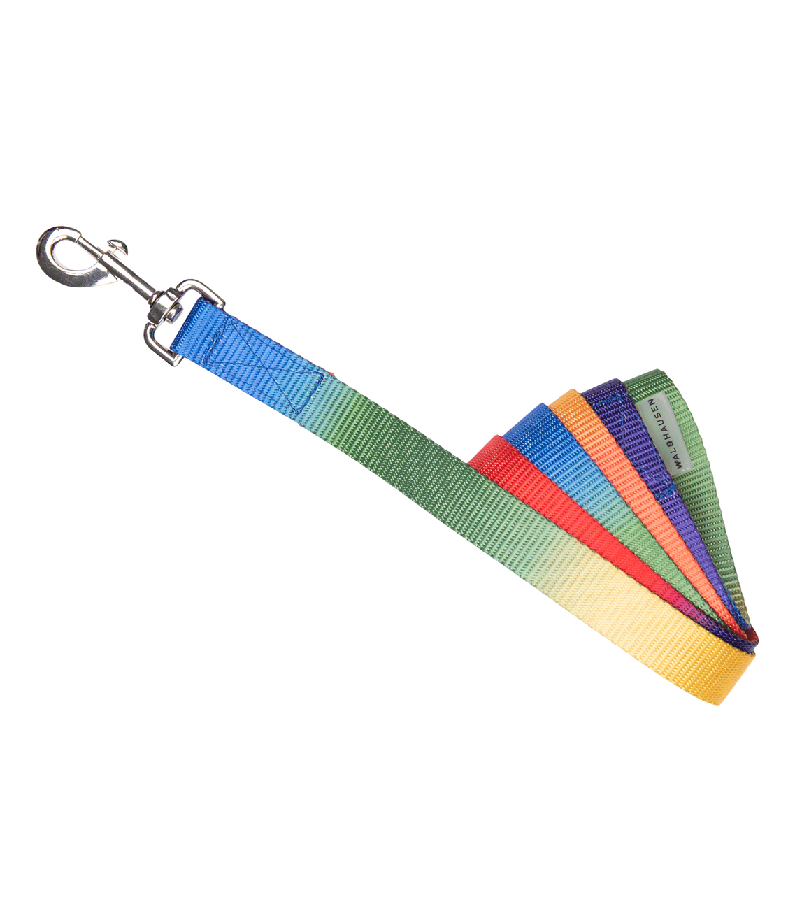 Gaudy coloured tie rope. With wrist loop and snap hook. Perfectly matches the Rainbow coloured halter (coming soon)