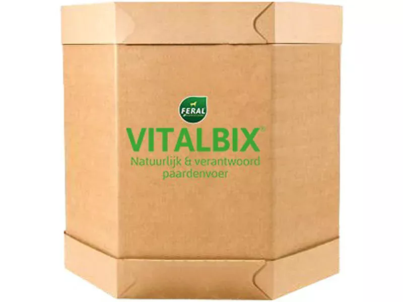 The Vitalbix Breed & Grow XL-Box is a sturdy cardboard box with a resealable lid. You can easily access the feed by cutting into the XL-Box. The XL-Box comes with a resealable inliner (plastic bag) and is delivered on a Euro pallet.