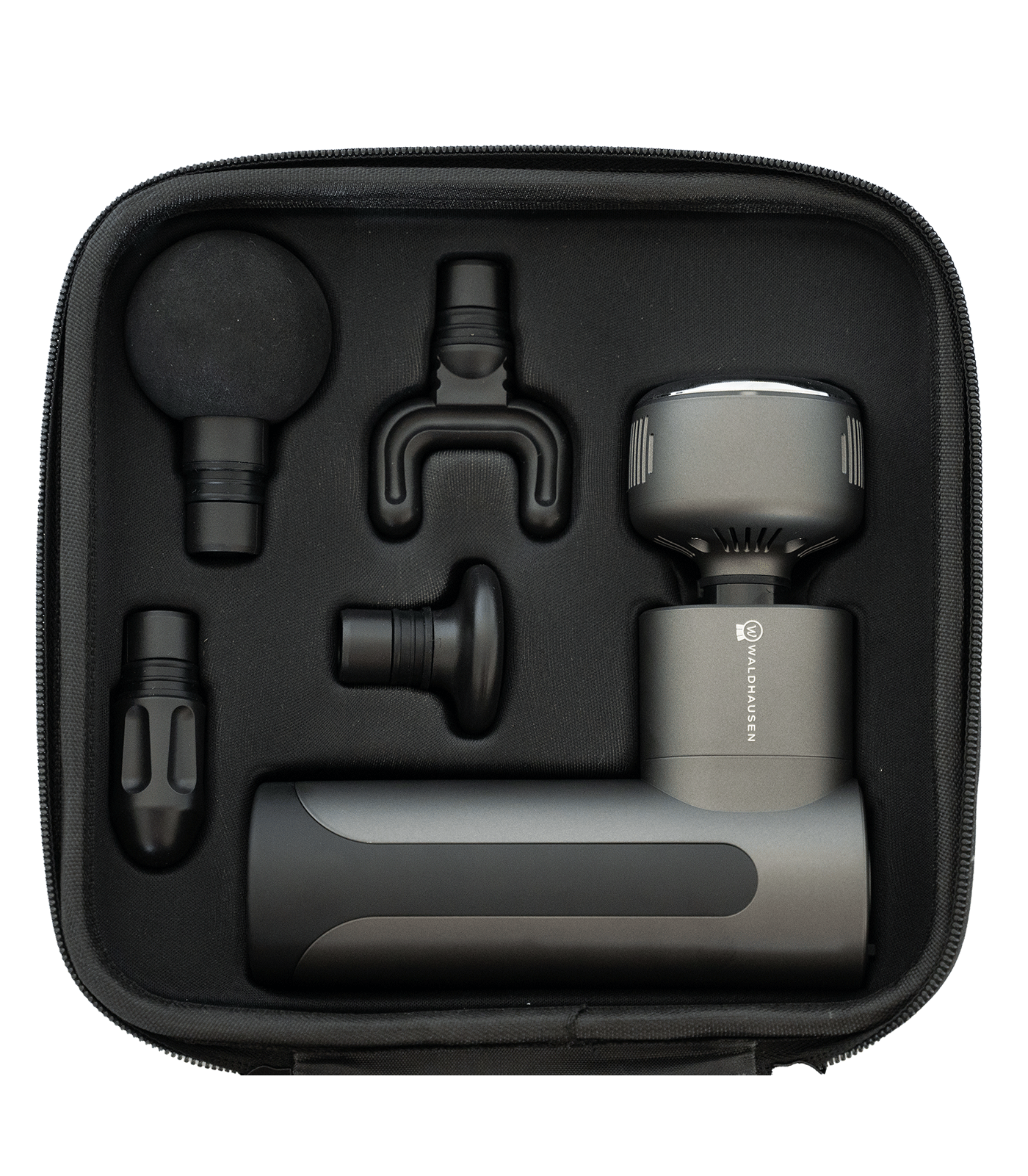 The latest Waldhausen Health + Care massager Pro, Hot & Cold from Waldhausen is not only a must-have in the stable, but also the perfect companion when travelling. The five different attachments enable both punctual and flat applications, which means that the different muscle areas of the horse can be treated individually thanks to the speed regulation. For warming up and loosening up or after exercise, the new Waldhausen Health + Care massager Pro from Waldhausen can contribute to your horse”s regeneration with three functions – vibrating, cooling or warming. Use the three different cooling and heating levels at the touch of a button (between 10°C and 45°C, ±5°C). The heat function has a muscle-relaxing, circulation-enhancing and pain-relieving effect, while the cold function can temporarily reduce blood flow and thus minimise swelling. The non-slip surface ensures comfortable handling and operation of the appliance. At just 620 g and a maximum volume of 45 dB, it is one of the lightest and quietest massagers.