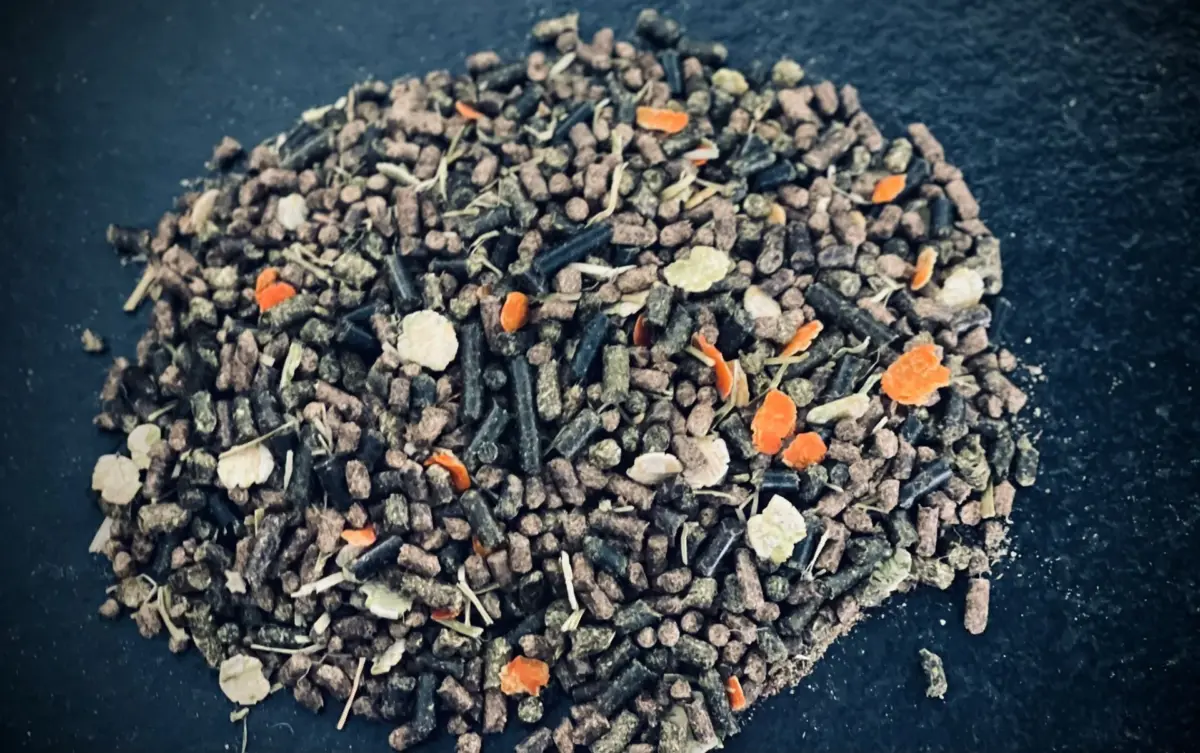 • Het voer bevat kruiden die het spijsverteringsstelsel ondersteunen, geen klinische kruiden maar dus een extra ondersteuning zodat je niet kan ”overdoseren” in kruiden.